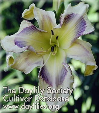 | Description : medium blue lavender with shaded patterned eye above green throat | |